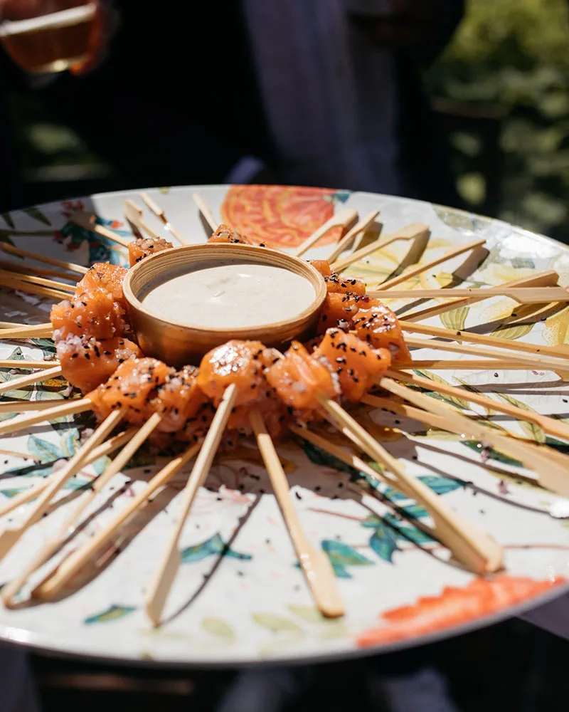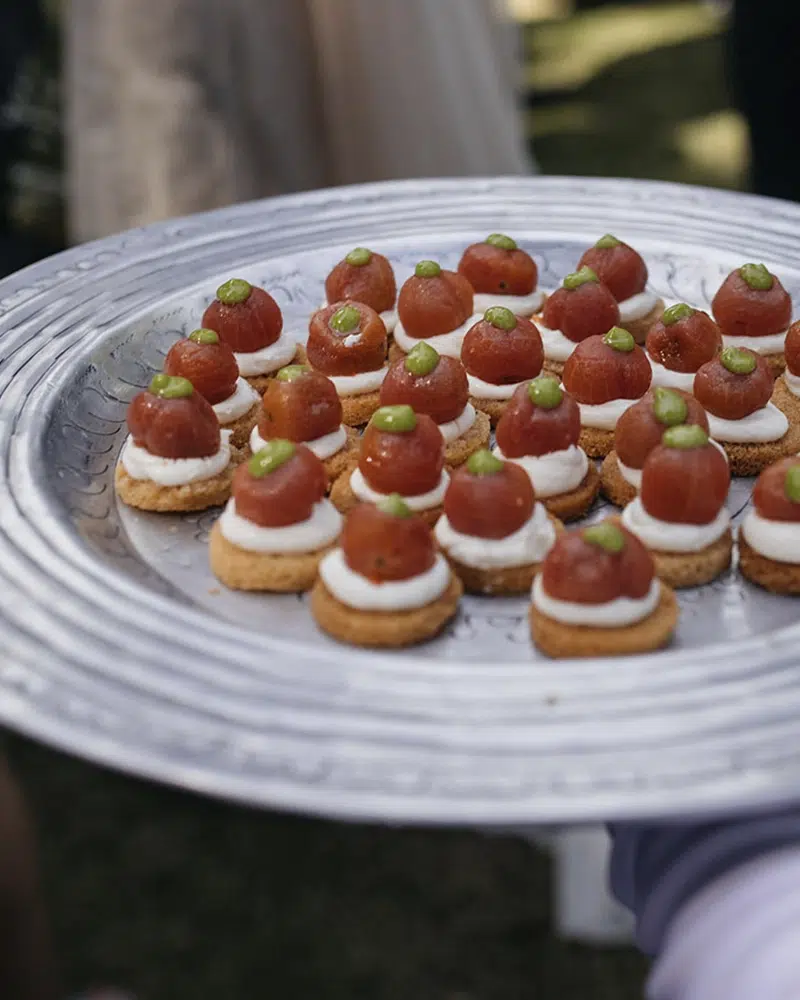 Terralda_ Catering_Costa_del_SolOur most popular canapés combine familiar flavours with refined presentation and are designed to be easy to enjoy while standing and socialising. Mediterranean-inspired options are particularly popular for destination weddings, alongside seafood, premium meats, and creative vegetarian bites. In terms of quantity, we advise tailoring numbers to the length and purpose of the reception. For a short welcome drink before dinner, fewer canapés are needed, while longer cocktail-style receptions require a more generous offering. We guide couples carefully so guests feel well catered for without over-ordering.