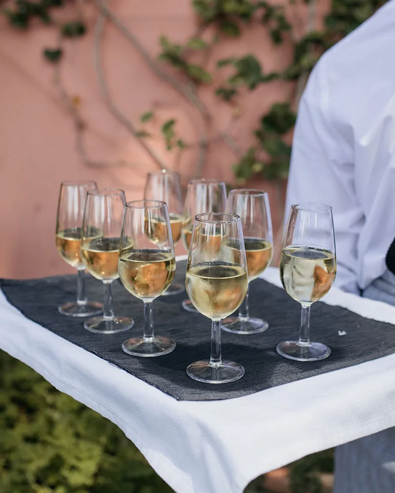 Terralda_Catering Drinks and Bar Service: Wines are carefully selected to complement the menu, with white and red options served during the meal and champagne available on request. The open bar includes well-known international brands, with the option to upgrade to premium or extra-premium selections. Cocktail, gin and tonic, beer, and mojito stations can be added to elevate the drinks experience and keep the atmosphere lively throughout the evening.