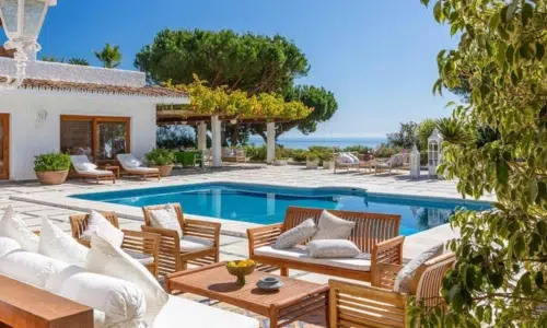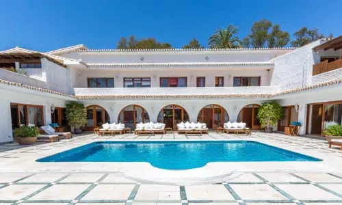 La Susana enjoys a privileged location in the hills of Balcón del Golf, just 10 minutes from Marbella’s vibrant town centre and 5 minutes from its own private beachfront club. This means you get the best of both worlds: peaceful seclusion with panoramic views, plus easy access to the Mediterranean Sea and Marbella’s shops, restaurants, and historic old town. It’s also conveniently located for guests flying into Málaga International Airport, which is around a 40-minute drive away.