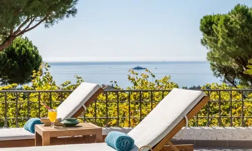 Private beach deck with direct Mediterranean access